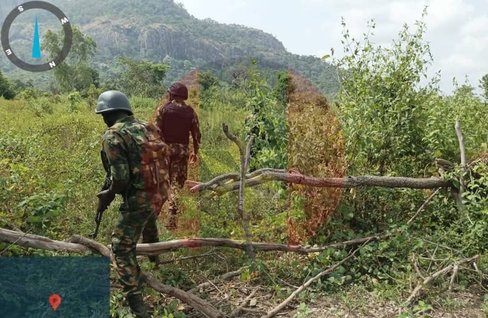 On 2 December 2025, troops launched a deliberate clearance operation under Operation Zafin Wuta across Shiid, Agia and Tyozua villages in Takum LGA following credible intelligence on the activities of armed groups within the Tor-Tser general area. As the soldiers advanced towards the mountainous hideouts, the bandits fled deeper into the rugged terrain, abandoning their camps. The troops conducted a detailed search before destroying the camps, which the criminals had previously claimed were inaccessible to security forces. In Tyozua, the fleeing bandits set ablaze a wooden bridge in an attempt to obstruct troop movement, but the soldiers pressed forward with determination and forced the criminals across the power line into neighbouring Benue State. During exploitation, one suspect, identified as Dahiru Maigari, was arrested and is currently undergoing preliminary investigation.