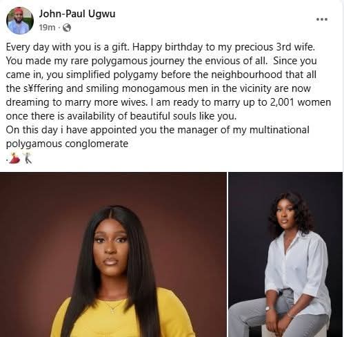Everyday with you is a gift. Happy birthday to my precious 3rd wife. You made my rare polygamous journey the envious of all. Since you came in, you simplified polygamy before the neighbourhood that all the s¥ffering and smiling monogamous men in the vicinity are now dreaming to marry more wives. I am ready to marry up to 2,001 women once there is availability of beautiful souls like you.